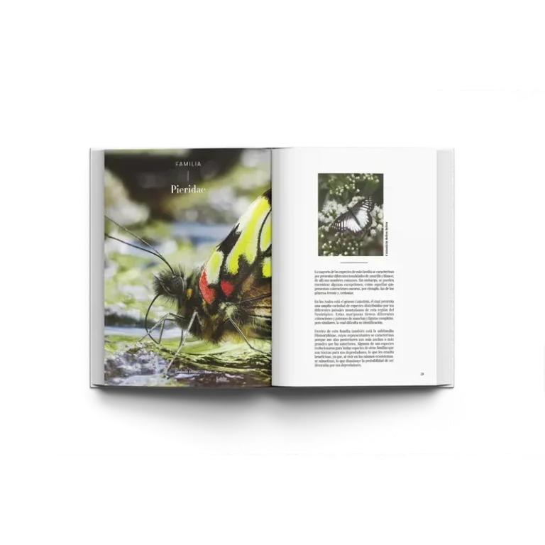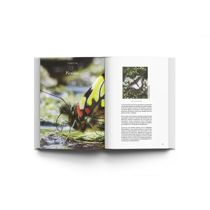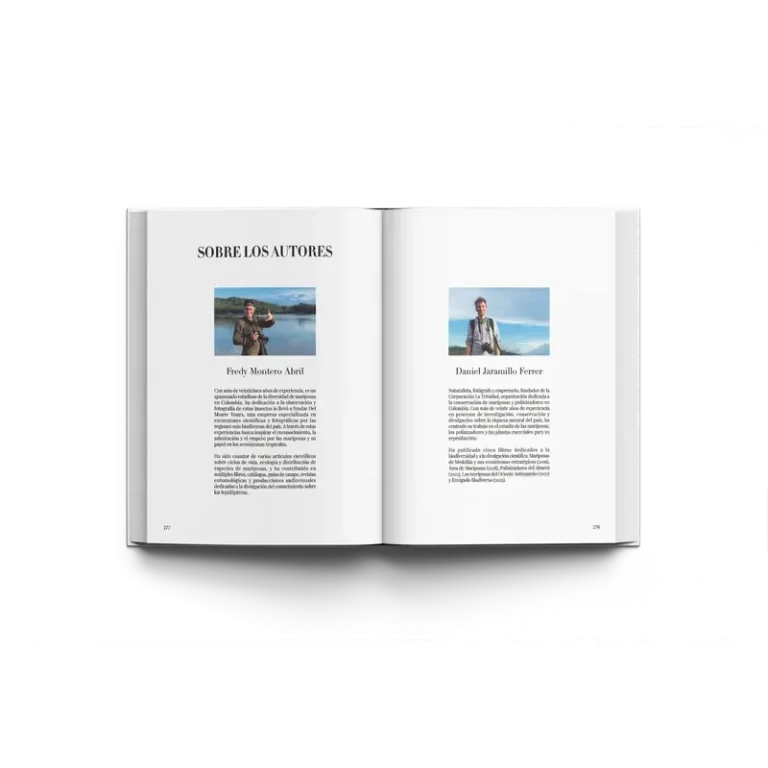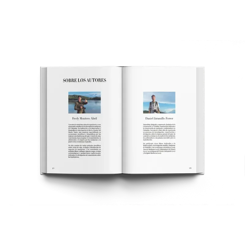-Incluye fotografías profesionales de Fredy Montero Abril y Daniel Jaramillo Ferrer que nos permiten deleitarnos con la majestuosidad de nuestras mariposas y apreciar la biodiversidad de nuestro país.
