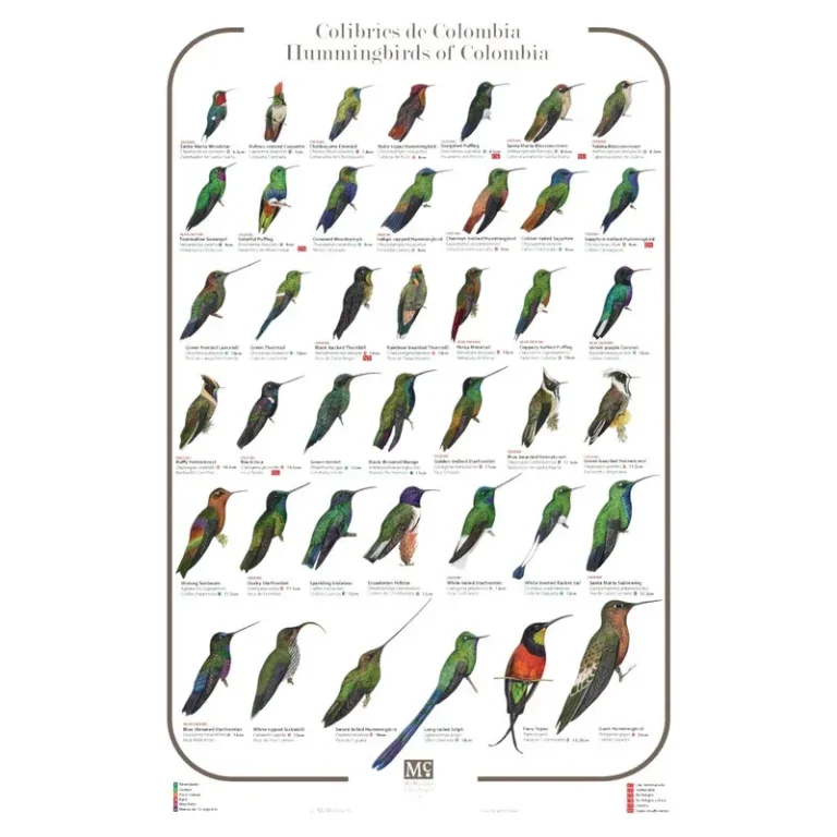 Los afiches están impresos a todo color sobre papel couché o similar, con ilustraciones científicas y nombres comunes y científicos de cada ave. El diseño busca educar y sensibilizar sobre la conservación de estas especies únicas, muchas de las cuales solo se encuentran en Colombia.
